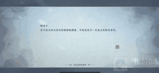描述完然后回去找画师,这次他会教我们对笔墨的运用之法,然后同样会给出文字线索,要根据线索提示来寻找地方。