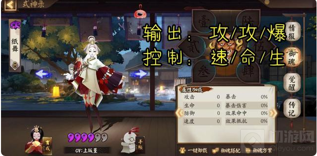 御魂选择纸舞除了普攻以外的伤害都是间接伤害,所以也可以不用堆暴击,配合其他的减防式神,可以打出很高的伤害,二四六号位可以用攻/攻/爆,且不需要把暴击加满,让纸舞的输出可以很暴力。纸舞本身也有无视防御的技能,用间接伤害打出暴击还是有很大几率的;当然也可以在满暴的基础上叠爆伤,这样虽然暴击稳定了,但是伤害值很低,并不是特别建议。如果让纸舞用控制辅助技能,那么二四六号位可以选择用速/命/生,经典的辅助式神搭配,放弃输出能力,用引爆buff沉默对方来进行控制。