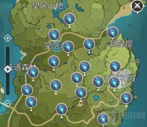 2、下面3DM小编为大家带来星落之地、孤云阁、轻策庄区域的陨星碎屑点位: