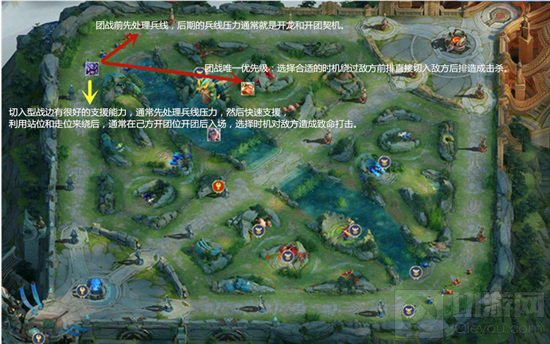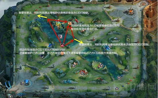 3,团战需要绕后直接对敌方C位造成伤害(优先杀C位);