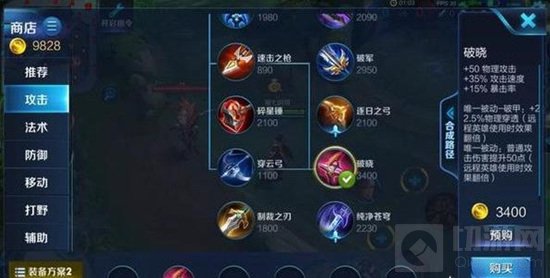 5.堆物攻的刺客英雄多会后期选择破军,破军确实有高额的物攻加成再配合被动的效果打脆皮效果极其明显,但是破军的价格实在不敢恭维,不过这时候我们可以选择先用暗影战斧过度一下,积累经济之后再换破军。