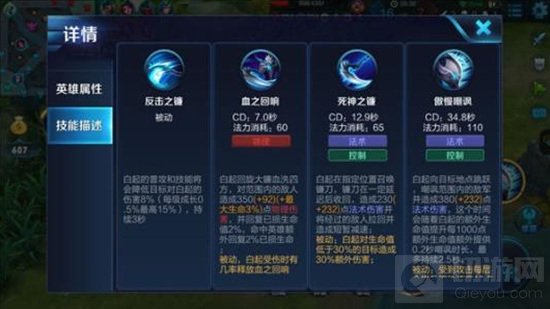 4.如果我问你白起的大招是什么相信绝大多数玩家都会说是嘲讽敌人,造成伤害这个直接略过就可以了,但是不知道多少人知道嘲讽敌人期间白起收到的生命回复效果是翻倍的呢?也就是说假如白起嘲讽了敌人,这时候白起再用一技能就可以回复4%的已损生命值,并且这时候白起使用治疗造成的效果也是双倍的哦,时刻记住这点在团战或者逃命时都有很大的作用哦!