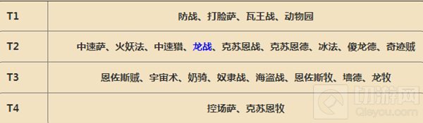 T1:当前环境佼佼者,极其完善的系统。T2:有一些弱点但也是天梯及冲传说的有力竞争者。T3:较为中庸的卡组,强度稍缺。T4:极其小众的卡组,仍需要优化。