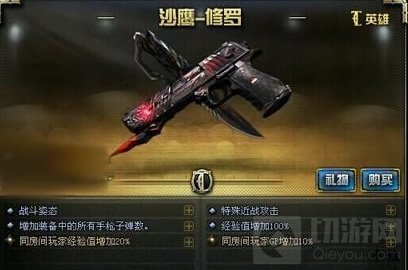 沙鹰修罗这把武器不仅外观好看酷炫,而且属性能力也非常不错,更重要的是这把武器在挑战模式中所带来的效果更佳。精准度的提升就不说了,而且穿透能力也会逐渐提升,同时使用这个沙鹰修罗对BOSS造成的伤害也是非常可观的,其次是超快的换弹速度以及经验值方面增加到了100%,其他队友也能够跟着受益获得30%的经验值和20%的金币。