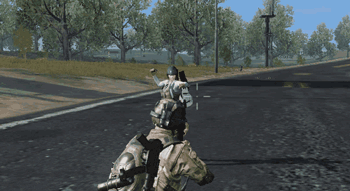 如果对手距离自己不是很远,我们可以向对手投掷一颗闪光弹,让对手暂时致盲,等到暂时失明的对手惊慌逃窜时,我们要抓住闪光弹发挥效果的短短几秒,迅速将对手击倒。