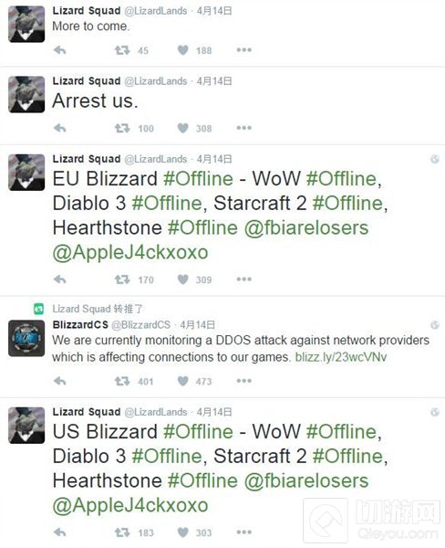 对面多方的攻势近年来Lizard Squad有多名成员被捕,然而至今这个组织依旧是相当活跃,这回盯上了暴雪,看来暴雪的网监近期不盯紧点不行了。