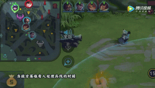 但是到了中期,有一些重要性的团战,比如破中塔、抢主宰和暴君的团战。你就可以根据实际情况,让两边的兵线5:5对开,选择放线支援。