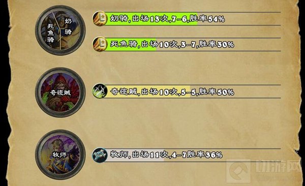 胜率最低形态top3:死鱼骑、中速萨、牧师
