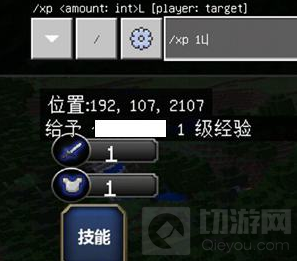 也就是说我们如果想要快速获得技能点的话,需要多去打怪升级,当然如果觉得麻烦的话,我们可以使用指令 /xp 1L,让人物提升一级。(要1级1级升,一口气升100级会出bug)