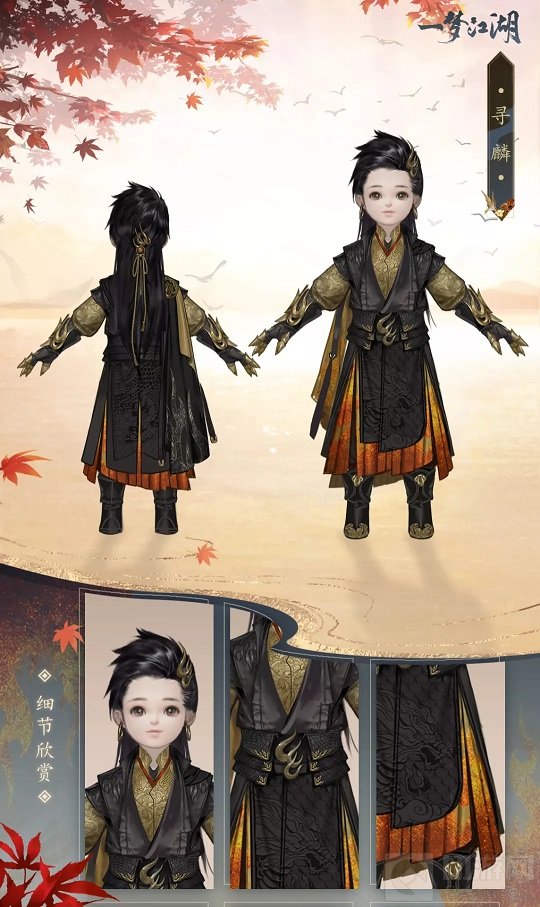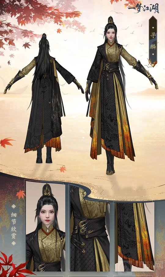 一梦江湖手游金装寻麟怎么样呢?游戏在近期更新了全新的校服外观,每个门派都有了自己的新校服,同时为了奖励做金装的玩法,官方本次也带来了全新的二阶金装外观寻麟,该时装以麒麟为原型,整体搭配以黑金为主,下面小编就为大家带来该金装的外观一览,快来看看吧。