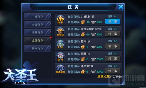 在《大圣王》手游的世界里,强者总是各种荣耀加身。在游戏中获得成就点,彰显自己的实力与荣耀。强大的成就系统,包含游戏内所有成就任务。玩家只需简单点开成就系统,便可以查看到当前成就任务的完成状况。此外,玩家还可以通过成就系统查看达成成就的具体条件。有的放矢的完成成就任务,事半功倍。