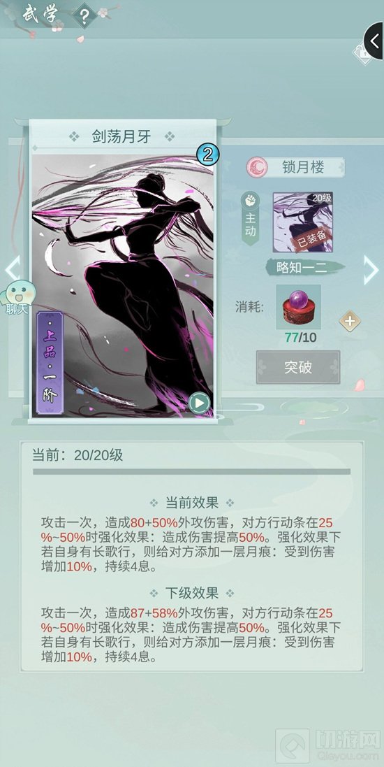敌人二息(25%-50%)放剑荡 触发月痕增伤百分之十和增伤飞影