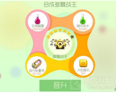 玫瑰精露*500+精灵泉水*300+强光能量泵*150+太阳晶石*1