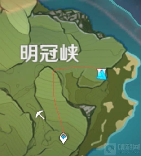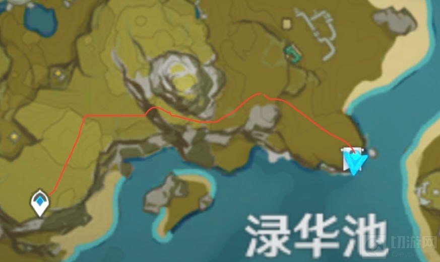 非常简单,沿着路线爬一下就行,注意出传送点会任务刷出三个丘丘人弓箭手,注意躲避攻击。