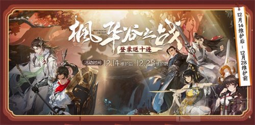 全民福利,登录即赠!全新版本“枫华谷之战”震撼登场,福利好礼全民赠送!12月14日维护后至12月28日维护前,少侠更新客户端并成功登录,即赠【门派寻访】十连抽!此外登录更有【炎玉·枫华谷】*2和【赤玉·绕梦思】*100相送,少侠使用【炎玉·枫华谷】可重置【枫华谷】秘境进程!助力少侠开荒全新秘境!