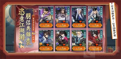 朋侣共锦裘 恣意江湖游。12月14日维护后-12月28日维护前,竞技玩法限定的侠客好感度道具,限时两周,开放售卖!少侠可以前往购买限定侠客好感道具,愿少侠朋侣共锦裘,恣意江湖游!