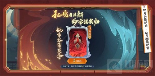 秘境日日新,珍宝满载归!12月14日维护后-12月28日维护前,【枫华谷清戾令】限时开售,秘令加持,助力少侠勇闯险境,一战到底!