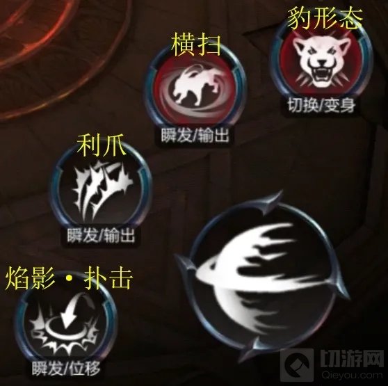 豹型技能:1焰影·扑击,2利爪,3横扫,4豹形态