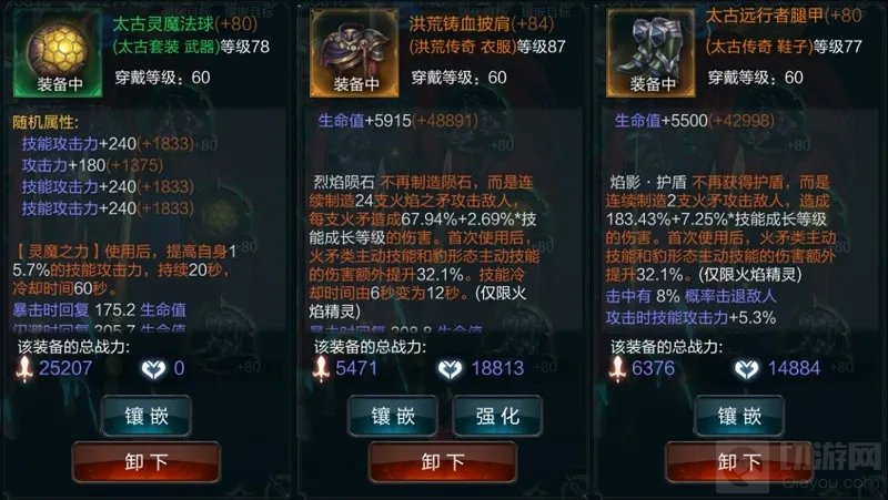 雇佣兵出战安布罗斯,穿伊莎杜拉其中一套太古套的武器+手+饰品+鞋子,再搭2件散装冥月头盔+冥月战甲,护石用圣神猎石。