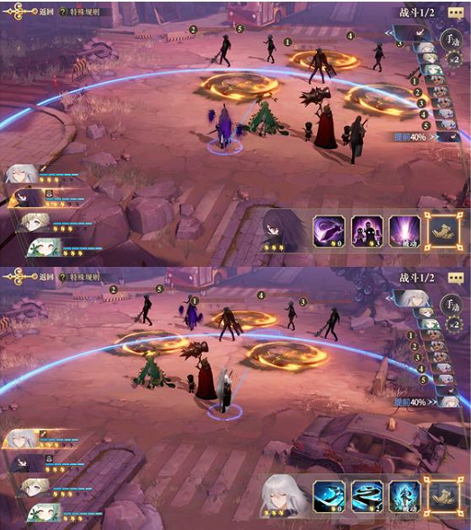 第一步,全体位移,三位输出分别位移到如图所示的位置,其中卡俄斯的位置非常关键,务必与图上一模一样!而白芷只需要站在原地平A或者治疗即可