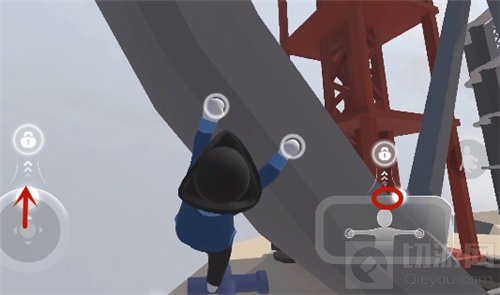 然后按住手势键【往下滑动】,把角色身体往上撑,滑到底后【快速松开】,在手势键顶部中间【快速双击】,抓牢墙面(双击的第二下不要松)。
