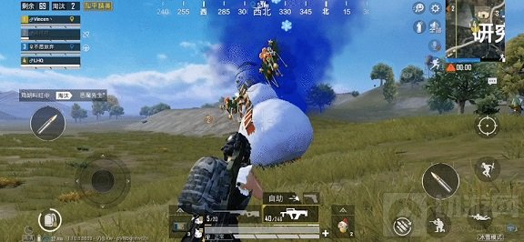 除了按照“国际惯例”备齐烟雾弹、手雷之外,在空投箱的近距离作战,雪球枪简直一战“封神”,不仅能封走位,还能实际打出伤害,眼下就靠着它续命了。