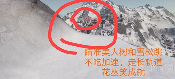 草丛和花丛那个成就从长轨道走不用吃加速,论剑场从短的走要吃一个加速,不然距离不够。