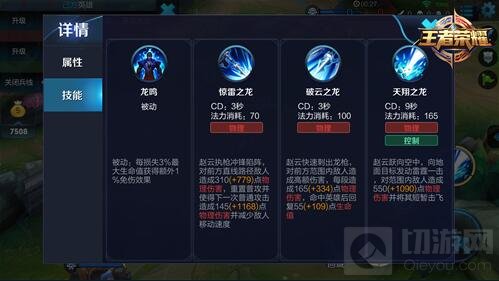 被动-龙鸣:变相增加赵云防御力,在血量越少时,防御能力将越强,想要击杀一名残血赵云可不是那么容易的事!
