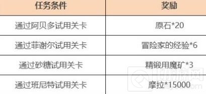 活动期间,旅行者可以使用包含试用角色的固定阵容进入指定的关卡进行体验,挑战成功后即可获得对应奖励!