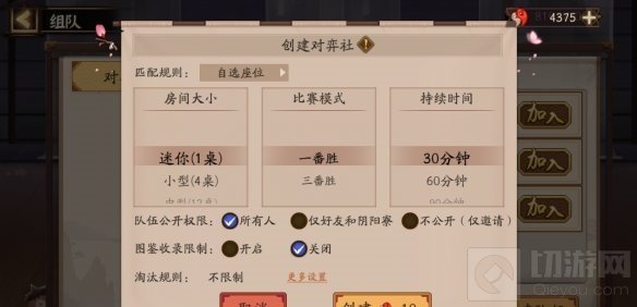 ※创建对弈社时,将根据选择的对弈社规模、持续时间计算创建勾玉消耗。