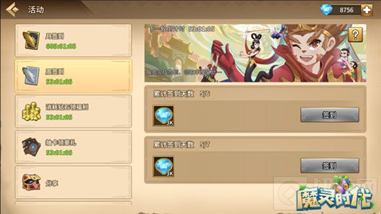 只要登录游戏完成签到即可领取大量钻石,葫芦兄弟界面的活动也可兑换大量钻石,每日通过这三个活动能获取的钻石数接近一万。完成日常和周常任务和累计在线时长也可获得一定钻石,积攒的钻石可用来抽卡,也可用来在市场换取各种培养资源。