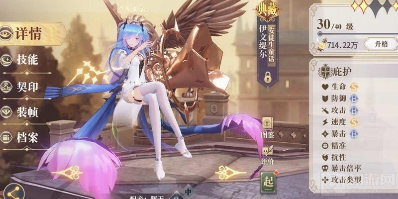 安徒生童话的稀有度为典藏级别(SSR)。其生命和速度属性达到S级,但其防御、攻击和暴击只有B级!