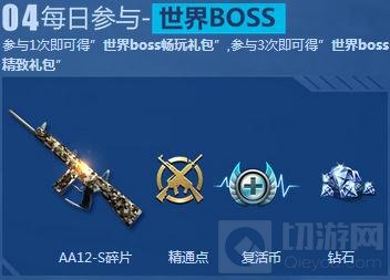 参与1次即可得”世界boss畅玩礼包”,参与3次即可得”世界boss精致礼包”