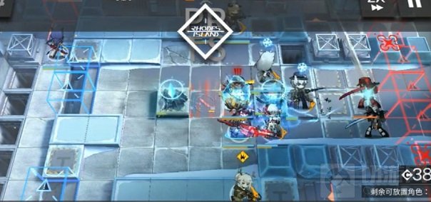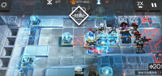 全场战斗的难度基本都在最后了,但其实也不太难。两个棕色三角位置翻面后防线很容易冻冰块,冰刀来了基本一刀一个。最好的方法是370之后先用快活顶掉前两架无人机的冰炸弹,然后立刻下银灰开真银斩,能打多少打多少,要是能把冰刀都杀了基本也就安全了,后两架无人机应该会把银灰冻住,因此真银斩能开出来的时间比较有限。另外白面鸮开技能强撑血量也有很大的帮助。