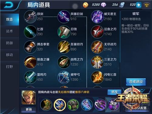 我们再来说说破军这把装备:
