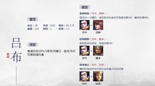 阵容特点:易组成,前中期吕布董卓很强。后期,呵呵,以上三大阵容都打不过。另外,别太培养陈宫,陈宫不强