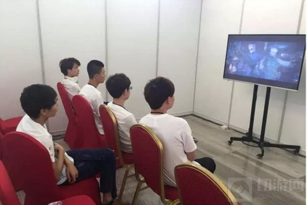 在候场区等待比赛的选手们,认真的看着其他对选手们的比赛。