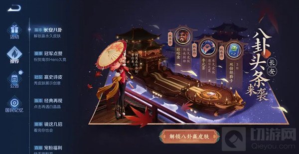 王者荣耀长安八卦线索在哪?游戏在近日开启了全新的长安八卦活动,在本次的活动中,玩家需要在地图中找到相应的线索,解锁八卦的谜题,即可获得抽奖机会,来赢取皮肤奖励,很多玩家都没有找到线索的位置,接下来小编就为大家带来该活动线索的位置介绍。