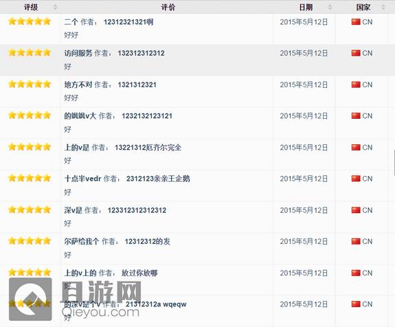 有趣的是,在《魔天记》的评论区,确实出现了大量意义不明重复明显的五星好评,评论者的ID和标题都毫无意义,而内容通常只有“好”或者“好好”两个字。这些评论集中出现在5月12日当天,致使这一天的评论数比前一天和后一天分别高出了数倍和数百倍——这是比较明显的“刷评论”现象,而且是属于刷评论当中手法最为粗糙低级的一类。