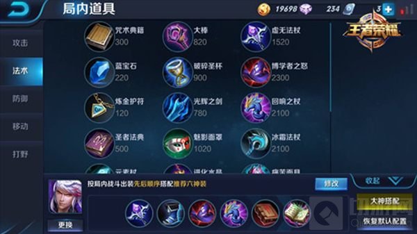 六神装:虚无法杖,秘法之靴,博学者之怒,回响之杖,血族之书,贤者之书