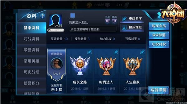 【成长之路】根据召唤师等级的提升来获得成就。