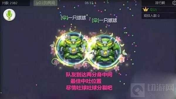 技巧描述:团战模式中经常用到的,可以快速将自己的体积转移到队友身上,个人模式2人合作,或许也可以用的上吧。
