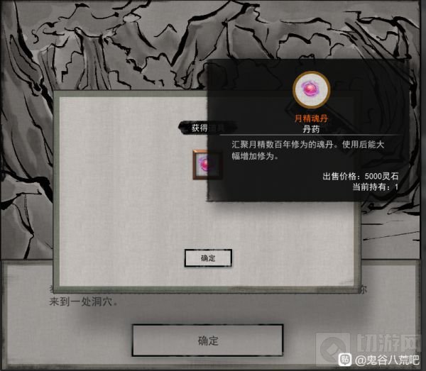 接下来就是剧情,然后选【岂能空手而归】,打一只蛤蟆获得一枚【月精魂丹】和一个十年期限的后天气运【月枝】,效果如楼下。