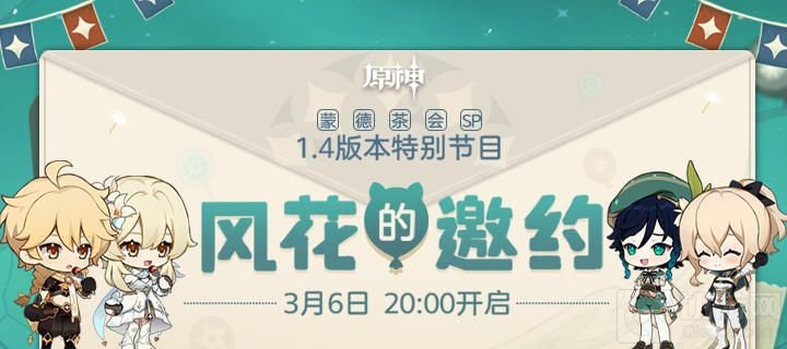 3月6日(周六)晚20:00,《原神》1.4版本前瞻特别节目即将开启。