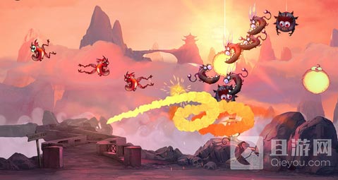 《火焰功夫(Fire Fu)》的画风令人不由自主地联想到育碧的《雷曼》系列,而玩法上更加接近早前亮相的动作游戏《小鬼在东京(Imps In Tokyo)》,玩家触屏控制火焰精灵移动,根据飞行轨迹攻击恶魔,而且还可灼烧他们,只要跟你挨边的事物全都将化为灰烬,火之力量,超级厉害!随着游戏推进,玩家所遭遇的恶魔能力也会增强,玩家需借助道具与升级自身实力,方才能打败强敌。