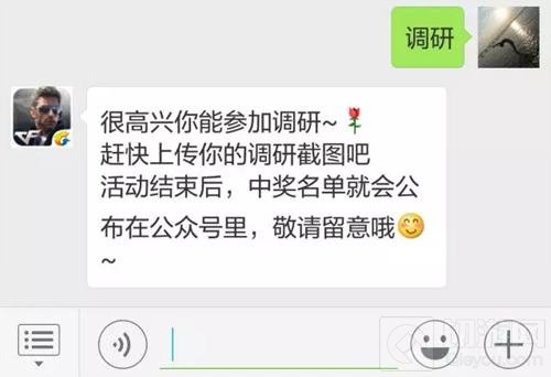 3、收到下图回复后请上传调研截图,便可参与活动!
