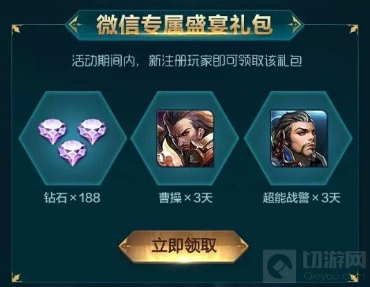 活动期间内,在2016年7月1日在微信页面下载游戏并成功注册的玩家即可领取微信专属盛宴礼包;
