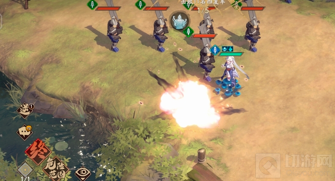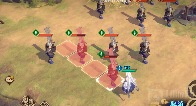 由原先的位置向前走一格,然后使用三技能,达到西夏军下方位置。