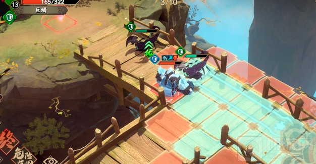 满血的蝎子走至当前位置,可以在后面回合追到逃走的刚磐兽,又可以吸引满血刚磐兽到达合适位置,并攻击自己,完成第一次施加中毒。