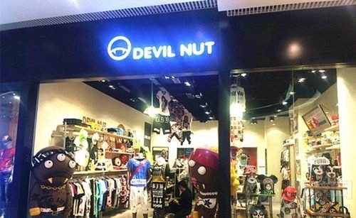 DEVIL NUT则是国际知名的一线潮流服饰品牌。2006年,它以独特的设计风格引起世界范围内潮流界人士的关注。DEVIL NUT引入test-tube零售连锁店扣开国内中高端零售的大门,刚进入国内市场就受到年轻时尚潮人的极力追捧。穿着DEVIL NUT品牌服饰已经成为彰显个人品味和独特个性的标志,成为潮流文化极佳的体验方式。
